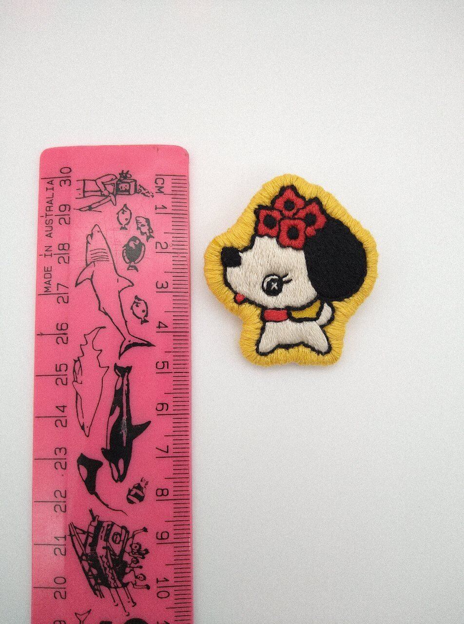 クリっとした目のレトロ犬モチーフ手刺繍ブローチです。
